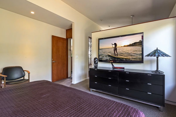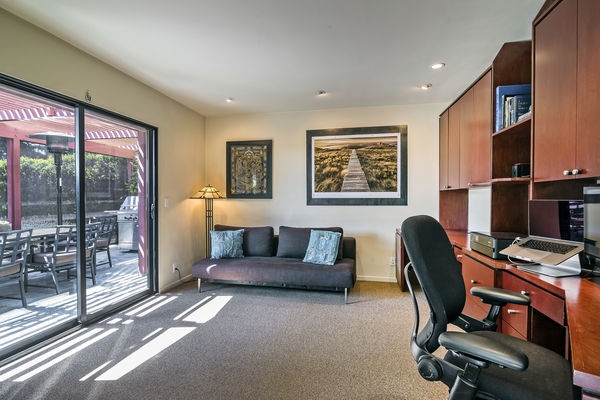 Unwind with a glass of wine as the sun sets over the Pacific, or take in the home’s tranquil atmosphere surrounded by lush landscaping. For those blending work and leisure, a spacious office nook with ample desk space and high-speed internet offers a productive, peaceful environment.