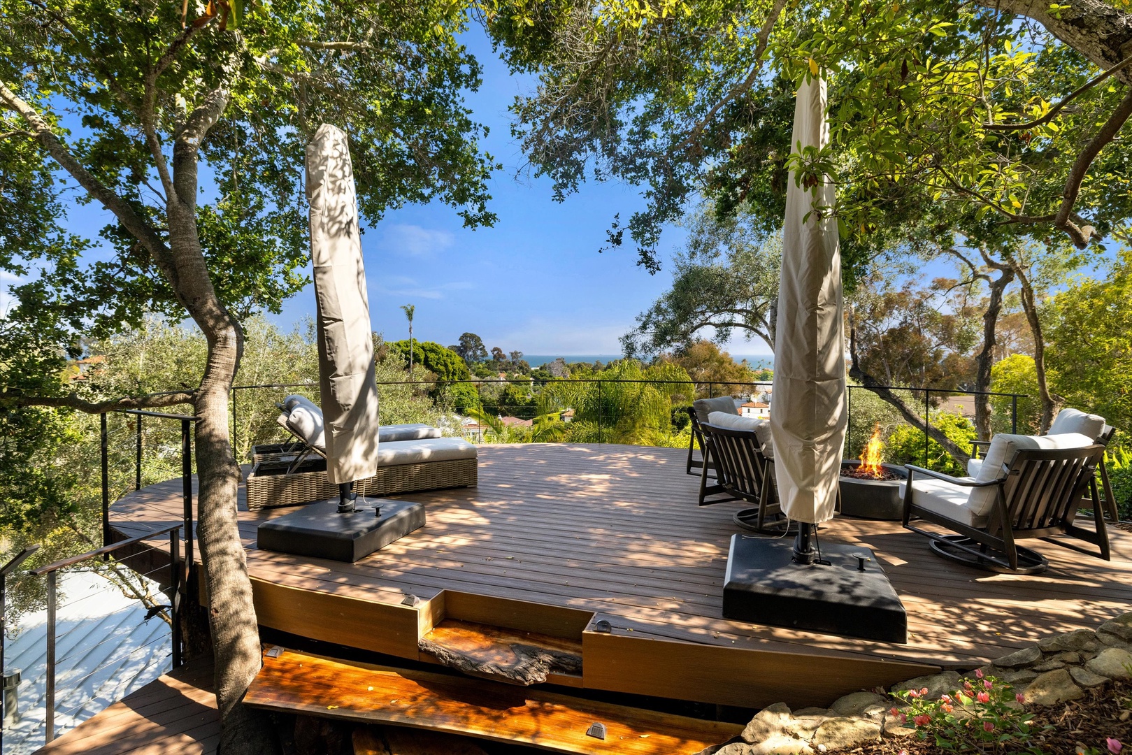 Bask in the radiance of the Santa Barbara sun, in your own private Treehouse. The meticulous outdoor space with cascading water features, beckons for relaxation, entertaining, and enjoying the beautiful climate year-round. This address is not just about the interiors, though. It's also about the location. Situated in prestigious Montecito, you're just moments away from pristine beaches, world-class dining, boutique shopping, and all the cultural attractions that Santa Barbara has to offer. From wine tasting to art galleries, the city is at your doorstep. Once you walk out the gated property, you will find another gate just steps away that takes you right out to Coast Village Road where you can begin exploring the lower village of Montecito.